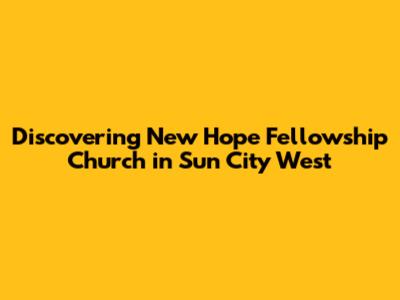 Hey everyone! Are you on the lookout for a church that feels like home in the vibrant community of Sun City West? Well, look no further! Let's dive into New Hope Fellowship Church Sun City West, a place where faith, community, and genuine connection come together. I'm excited to share some insights and why this church might just be the perfect fit for you, your family, or your friends. We will discover everything about this church, from its welcoming atmosphere to its various programs. So, buckle up, because we're about to explore one of Sun City West's hidden gems!