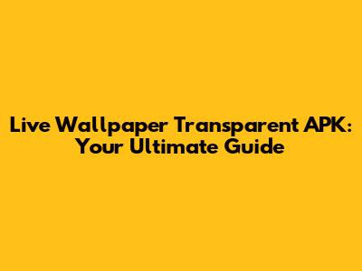 Hey everyone! Today, we're diving deep into the awesome world of Live Wallpaper Transparent APK. If you're looking to give your phone's background a serious makeover, making it look super slick and unique, then you've come to the right place. We're going to break down what these transparent live wallpapers are all about, why they're so cool, and how you can get your hands on the ilive wallpaper transparent apk to make it happen. Get ready to transform your device from drab to fab!