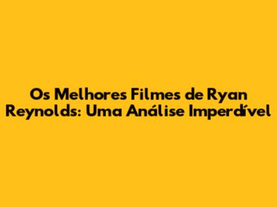 Os Melhores Filmes de Ryan Reynolds: Uma Lista Essencial