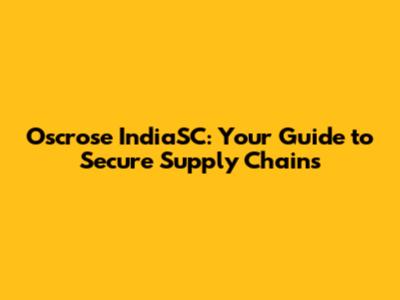 Oscrose IndiaSC: Your Guide To Secure Supply Chains