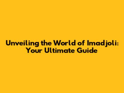 Unveiling The World Of Imadjoli: Your Ultimate Guide
